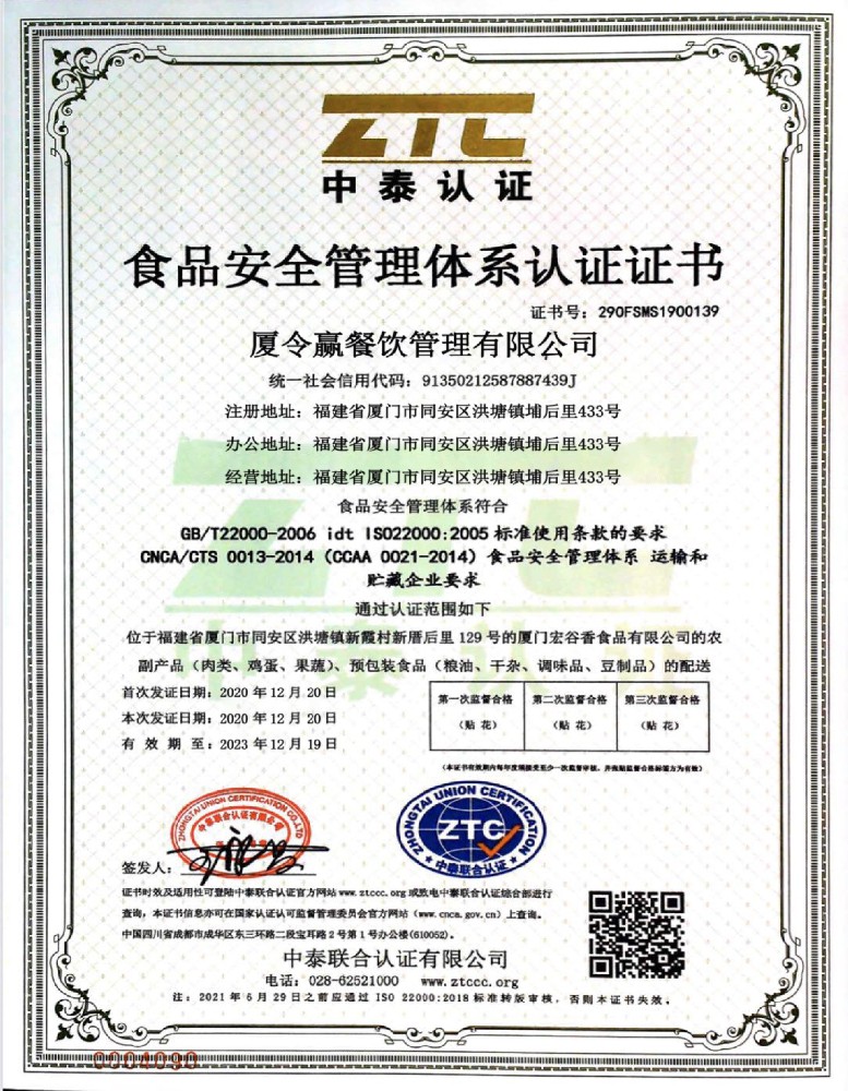 廈令贏餐飲管理有限公司從事食堂蔬菜配送,飯?zhí)贸邪?,食材配送,糧油配送,農(nóng)副產(chǎn)品配送, 在福建各大農(nóng)批市場設立蔬菜配送分部,擁有專業(yè)的蔬菜冰鮮冷庫及肉制品凍庫,配備蔬菜檢測化驗儀器...